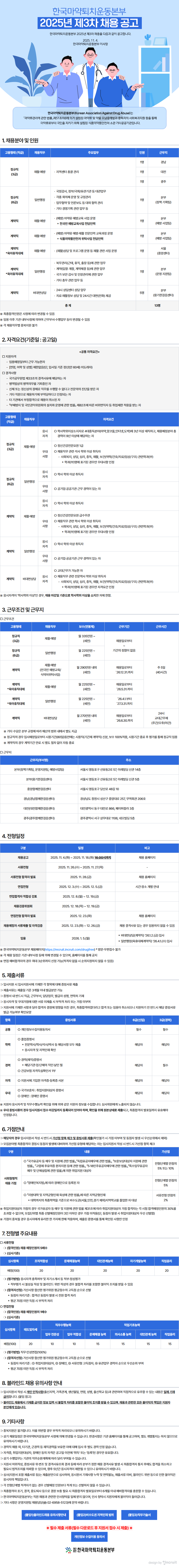 [채용] 한국마약퇴치운동본부 2025년도 제3차 채용 공고